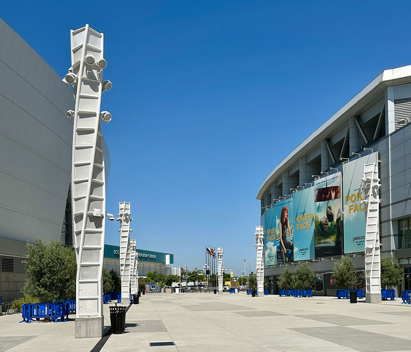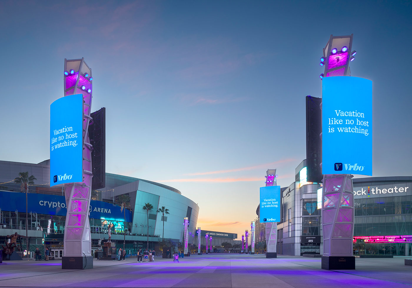 L.A. Live, a premiere destination for live entertainment in Los Angeles, sought a new public space. Between Crypto.com Arena and Peacock Theater—and adjacent to the convention center, Ritz-Carlton, JW Marriott and sports, music, restaurants, shops, bowling alley, cinema and museum—sits a six-lane, 1/3 mile long vehicular thoroughfare. The design agenda closes this road to automobiles entirely, eliminating the street and adjacent curbs and sidewalks. The result transforms the existing conditions into a grand city plaza of over 250,000 square feet of open public area.